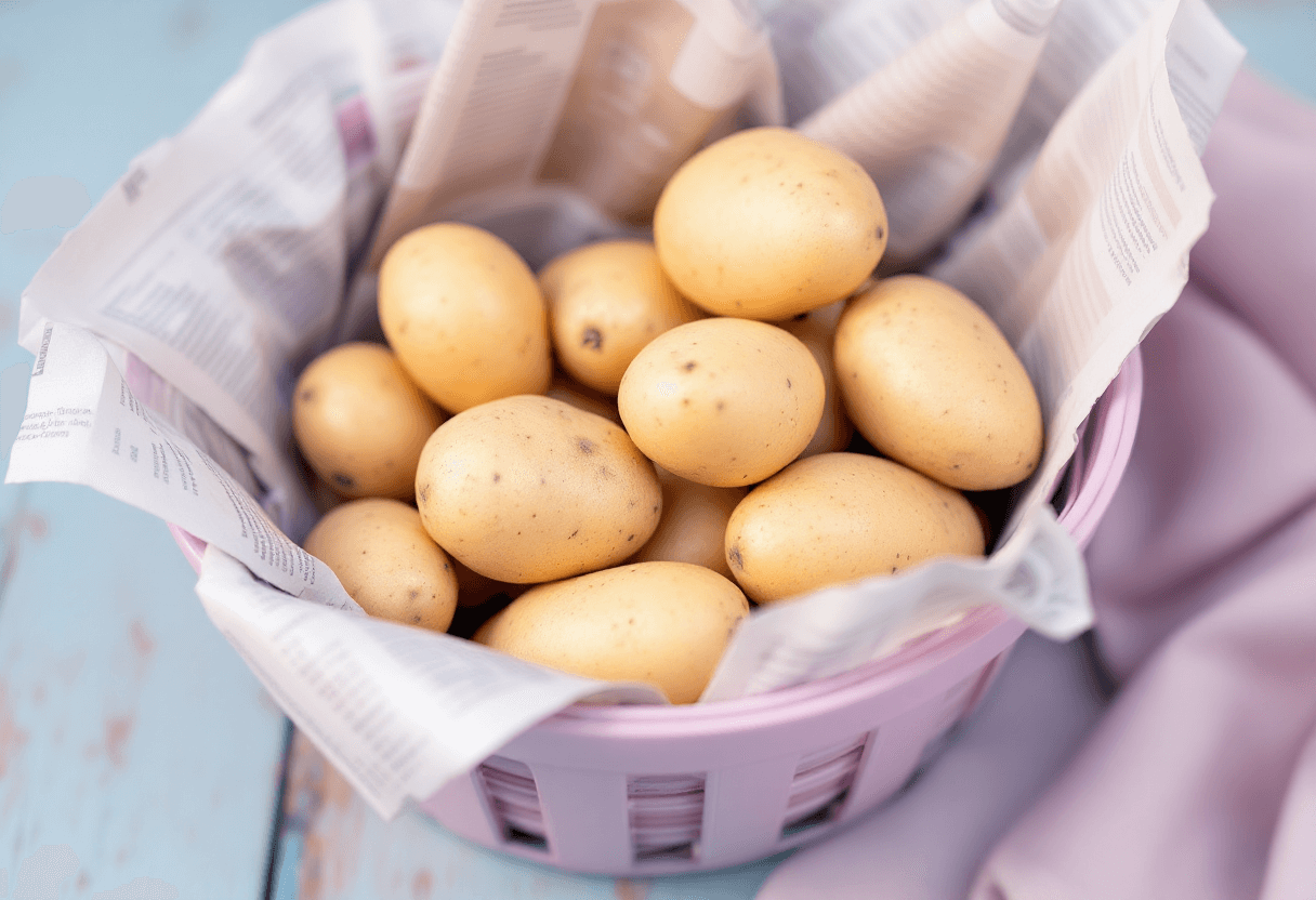 - 신문지로 싸기: 감자는 빛에 직접 노출되면 엽록소를 생성하여 겉 부분이 녹색으로 변하게 되는데, 이때 솔라닌 함량 또한 증가합니다. 따라서 빛을 차단하는 것은 감자 보관의 핵심입니다. 신문지는 종이의 질감 덕분에 빛을 효과적으로 차단할 뿐만 아니라, 감자에서 발생하는 여분의 습기를 흡수하는 능력도 뛰어납니다. 감자 하나하나를 신문지로 꼼꼼하게 감싸주면 빛과 습기로부터 동시에 보호할 수 있습니다.